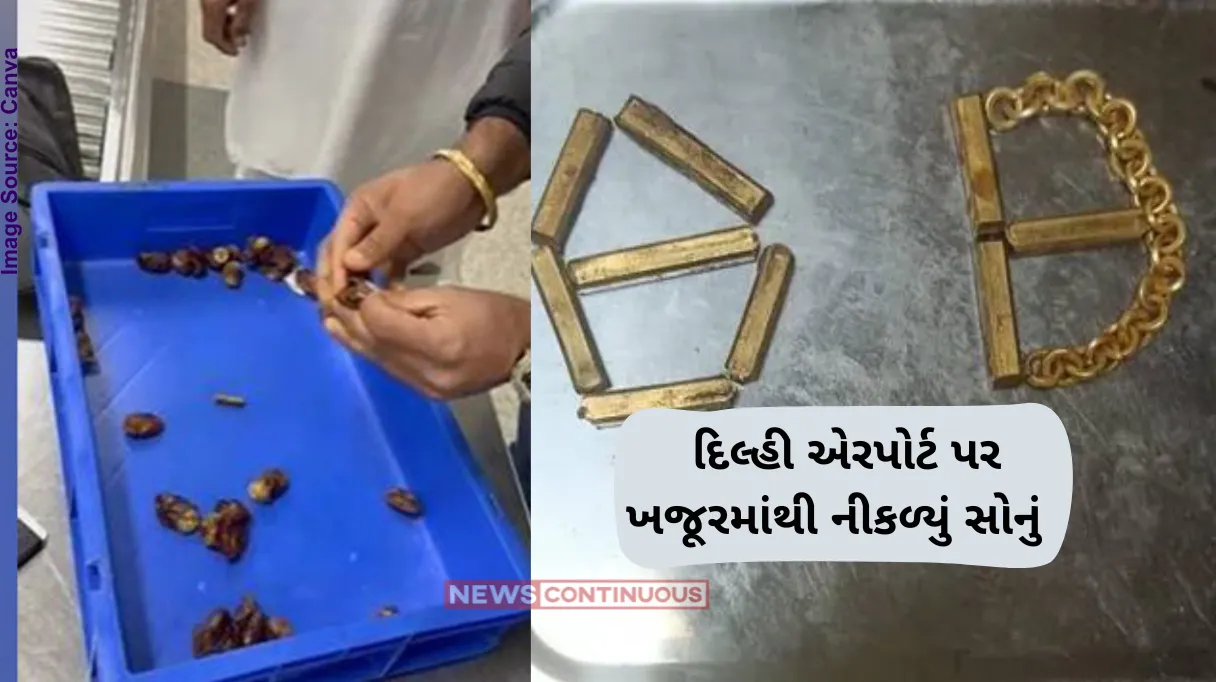 Gold Smuggling Video : દિલ્હી એરપોર્ટ પર કસ્ટમ વિભાગે દાણચોરીની એક અનોખી પદ્ધતિનો પર્દાફાશ કર્યો છે. જેદ્દાહથી દિલ્હી આવેલા એક મુસાફરની બેગની તલાશી દરમિયાન ખજૂરની અંદર છુપાયેલું સોનું મળી આવ્યું. કસ્ટમ અધિકારીઓને મુસાફરની ગતિવિધિઓ પર શંકા ગઈ, જેના પગલે તેની સંપૂર્ણ તપાસ હાથ ધરવામાં આવી. એક્સ-રે સ્કેનીંગ અને ડોર ફ્રેમ મેટલ ડિટેક્ટર (DFMD)માંથી પસાર થયા પછી શંકા વધુ ઘેરી બની.
