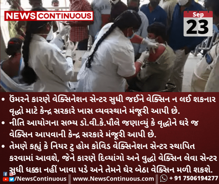નીતિ આયોગના સભ્ય ડો.વી.કે.પૌલે જણાવ્યું કે વૃદ્ધોને ઘરે જ વેક્સિન આપવાની કેન્દ્ર સરકારે મંજૂરી આપી છે.