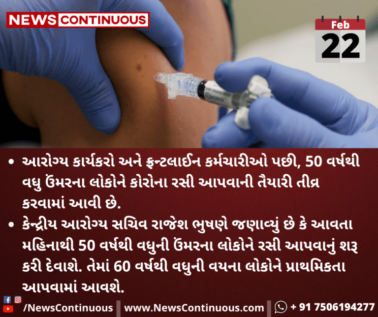 આરોગ્ય કાર્યકરો અને ફ્રન્ટલાઈન કર્મચારીઓ પછી, 50 વર્ષથી વધુ ઉંમરના લોકોને કોરોના રસી લાગુ કરવાની તૈયારી તીવ્ર કરવામાં આવી છે.