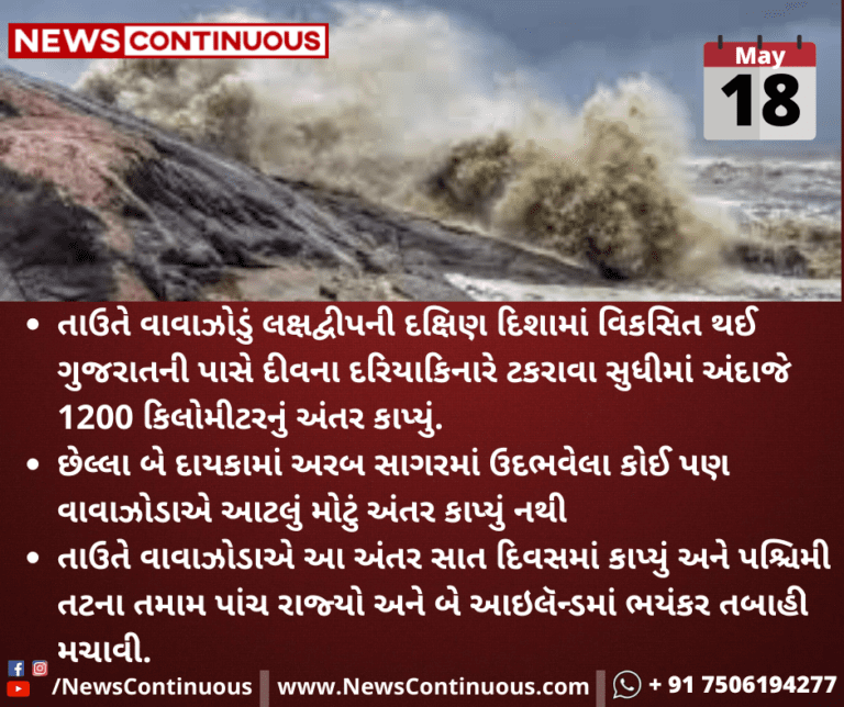 તાઉતે વાવાઝોડાએ આ અંતર સાત દિવસમાં કાપ્યું અને પશ્ચિમી તટના તમામ પાંચ રાજ્યો અને બે આઇલૅન્ડમાં ભયંકર તબાહી મચાવી.