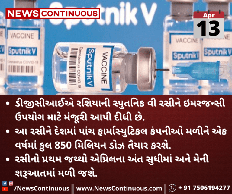 ડીજીસીઆઈએ રશિયાની સ્પુતનિક વી રસીને ઇમરજન્સી ઉપયોગ માટે મંજૂરી આપી દીધી છે.