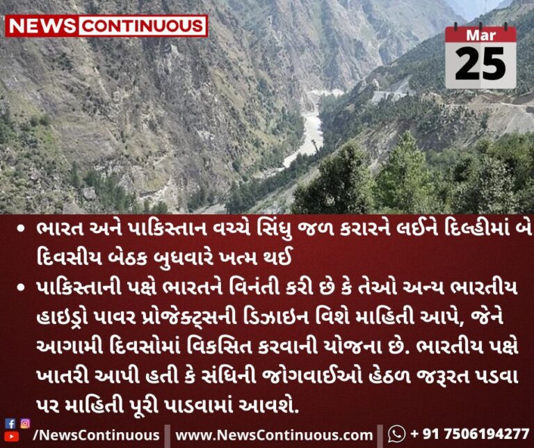 ભારત અને પાકિસ્તાન વચ્ચે સિંધુ જળ કરારને લઈને દિલ્હીમાં બે દિવસીય બેઠક બુધવારે ખત્મ થઈ