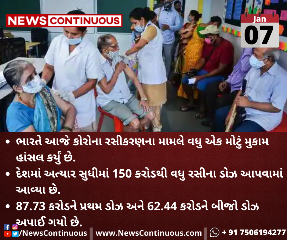 દેશમાં અત્યાર સુધીમાં 150 કરોડથી વધુ રસીના ડોઝ આપવામાં આવ્યા છે.