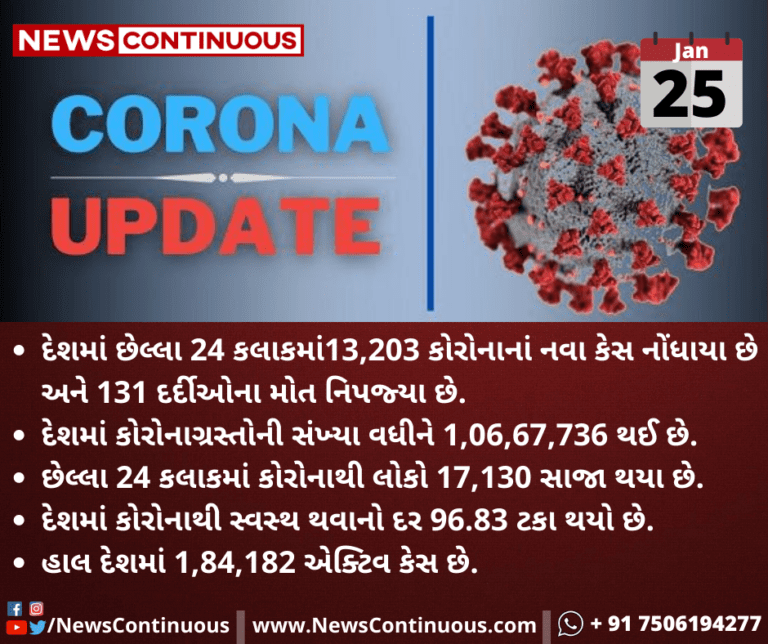 દેશમાં છેલ્લા 24 કલાકમાં13,203 કોરોનાનાં નવા કેસ નોંધાયા છે અને 131 દર્દીઓના મોત નિપજ્યા છે