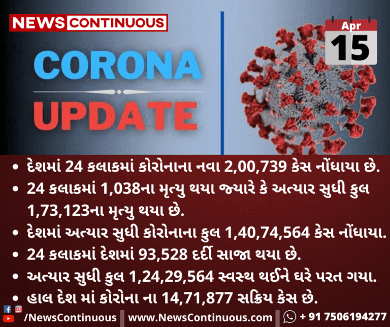દેશમાં અત્યાર સુધી કોરોનાના કુલ 1,40,74,564 કેસ નોંધાયા.