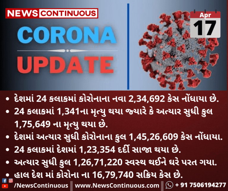 દેશમાં અત્યાર સુધી કોરોનાના કુલ 1,45,26,609 કેસ નોંધાયા.