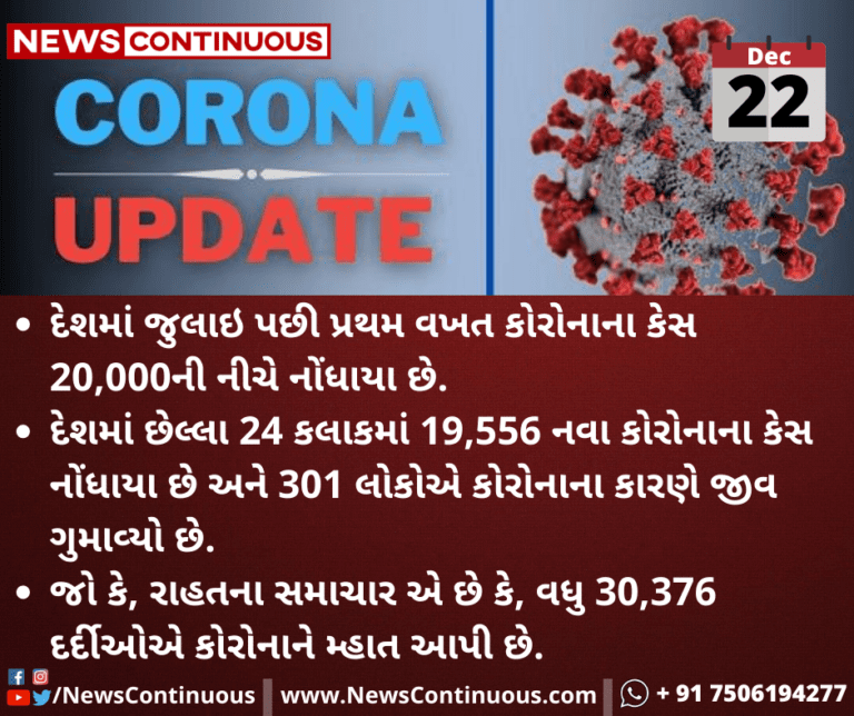 - દેશમાં જુલાઇ પછી પ્રથમ વખત કોરોનાના કેસ 20,000 ની નીચે નોંધાયા છે.