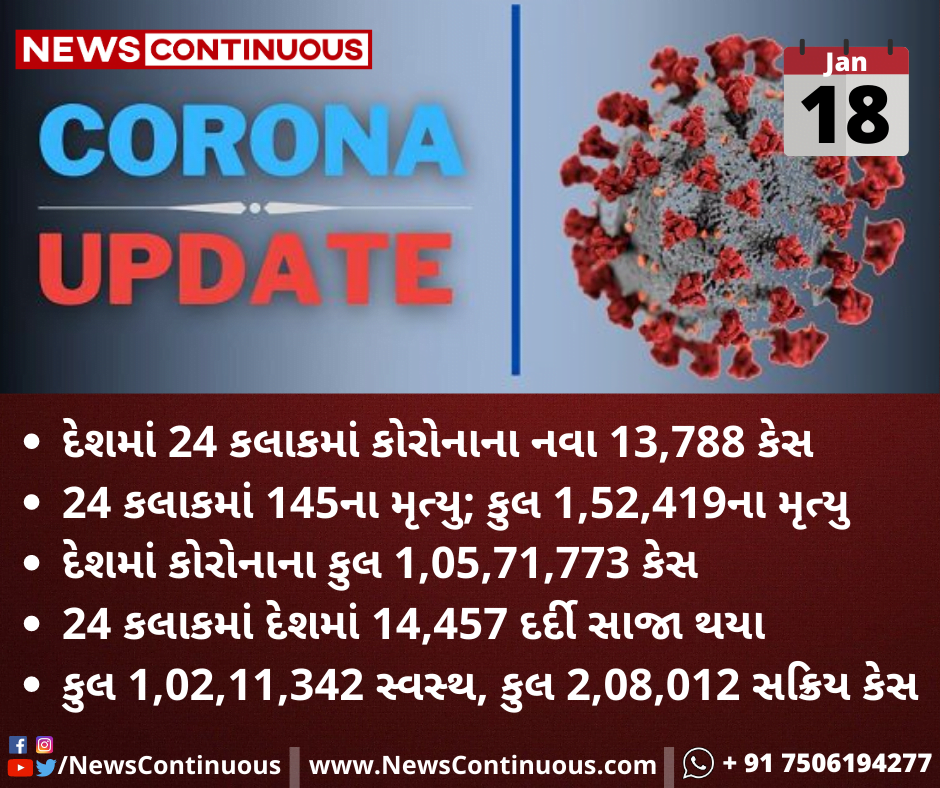 - દેશમાં 24 કલાકમાં કોરોનાના નવા 13,788 કેસ