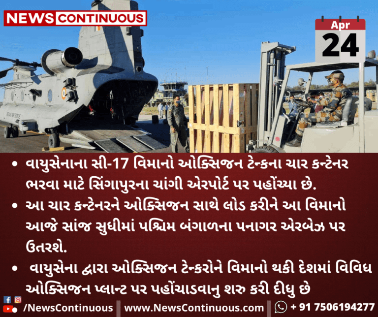 આ ચાર કન્ટેનરને ઓક્સિજન સાથે લોડ કરીને આ વિમાનો આજે સાંજ સુધીમાં પશ્ચિમ બંગાળના પનાગર એરબેઝ પર ઉતરશે.