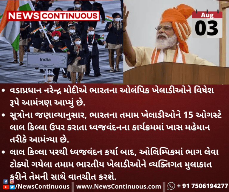 લાલ કિલ્લા પરથી ધ્વજવંદન કર્યા બાદ, ઓલિમ્પિકમાં ભાગ લેવા ટોક્યો ગયેલા તમામ ભારતીય ખેલાડીઓને વ્યક્તિગત મુલાકાત કરીને તેમની સાથે વાતચીત કરશે.