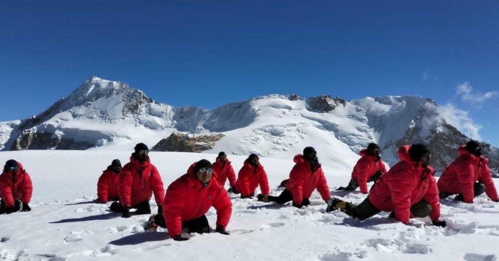 ITBP એટલે કે ઇન્ડો-તિબેટીયન બોર્ડર પોલીસના વીર જવાનોએ ફરી એકવાર અભૂતપૂર્વ સફળતા હાંસલ કરી છે. ઉત્તરાખંડ હિમાલયમાં (Yoga Practice on Himalaya) 22,850 ફૂટની ઊંચાઈએ બરફની વચ્ચે ઈન્ડો-તિબેટિયન બોર્ડર પોલીસ (ITBP)ના પર્વતારોહકો યોગાભ્યાસ(Indo Tibetan Border Police Yoga) કર્યો છે. અગાઉ, ITBPના ક્લાઇમ્બર્સ ગયા અઠવાડિયે માઉન્ટ અબી ગામિનના શિખર પર હતા, જ્યારે તેઓએ રસ્તામાં બરફથી ઢંકાયેલ વિસ્તારમાં એક જગ્યાએ ઉચ્ચ ઊંચાઈ પર યોગાભ્યાસ કર્યો હતો.