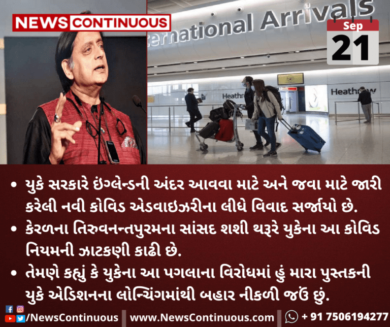 કેરળના તિરુવનન્તપુરમના સાંસદ શશી થરૂરે યુકેના આ કોવિડ નિયમની ઝાટકણી કાઢી છે.