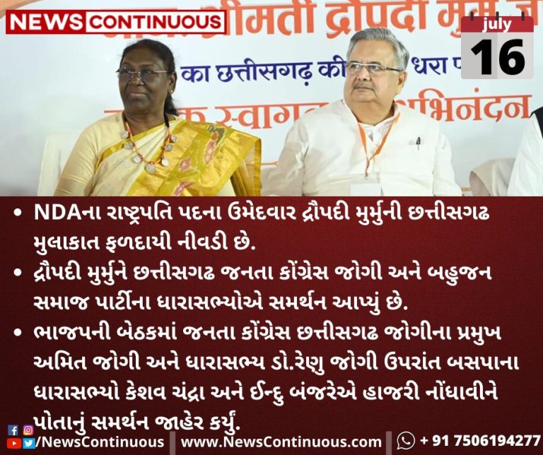 NDAના રાષ્ટ્રપતિ પદના ઉમેદવાર(Presidential candidate) દ્રૌપદી મુર્મુની(Draupadi Murmu) છત્તીસગઢ(Chhattisgarh) મુલાકાત ફળદાયી નીવડી છે.