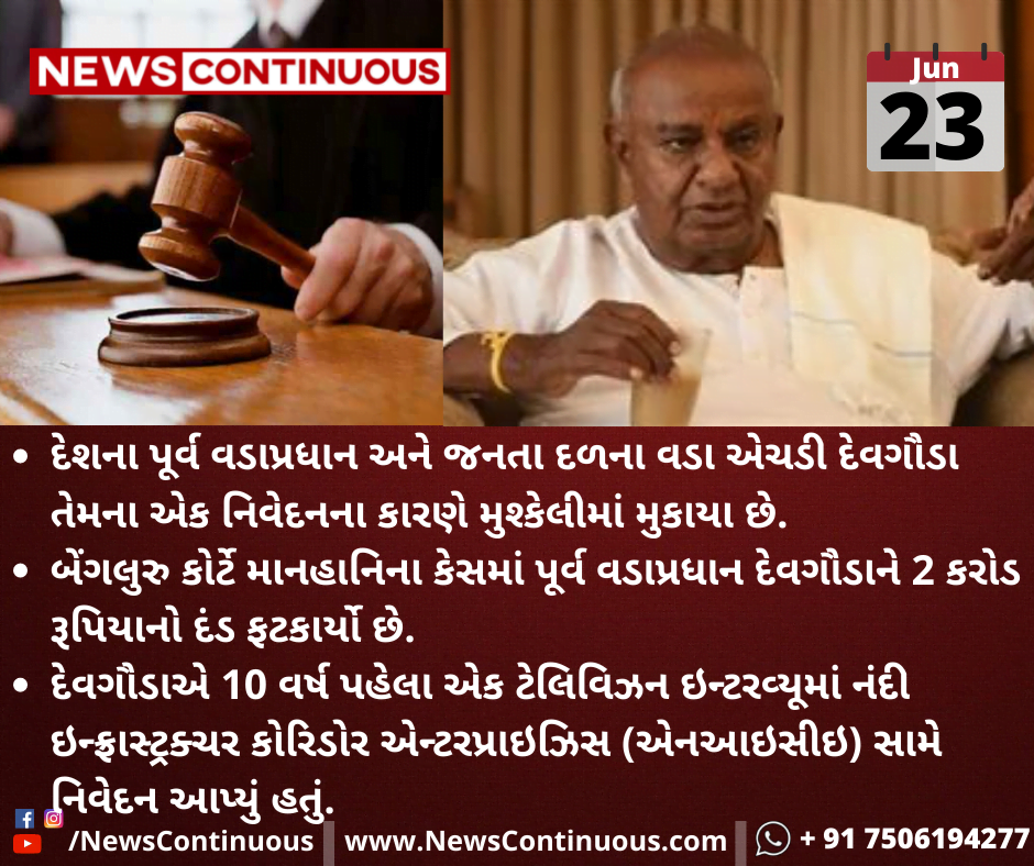 બેંગલુરુ કોર્ટે માનહાનિના કેસમાં પૂર્વ વડાપ્રધાન દેવગૌડાને 2 કરોડ રૂપિયાનો દંડ ફટકાર્યો છે.