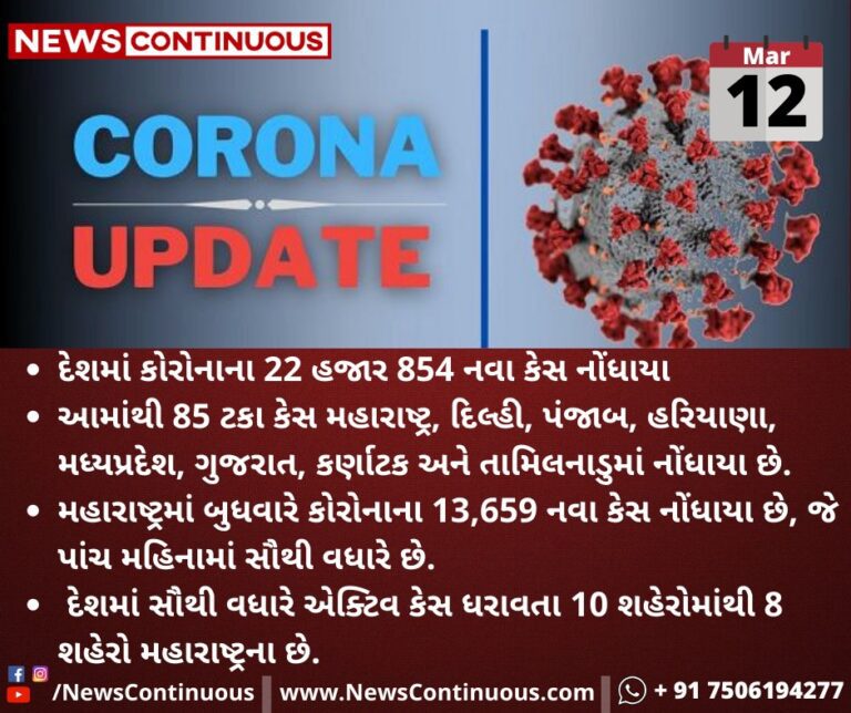 મહારાષ્ટ્રમાં બુધવારે કોરોનાના 13,659 નવા કેસ નોંધાયા છે, જે પાંચ મહિનામાં સૌથી વધારે છે.