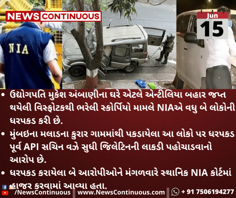 ઉદ્યોગપતિ મુકેશ અંબાણીના ઘરે એટલે એન્ટીલિયા બહાર જપ્ત થયેલી વિસ્ફોટકથી ભરેલી સ્કોર્પિયો મામલે NIAએ વધુ બે લોકોની ધરપકડ કરી છે.