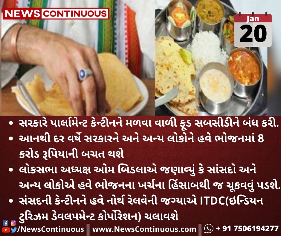 - સરકારે પાર્લામેન્ટ કેન્ટીનને મળવા વાળી ફૂડ સબસીડીને બંધ કરી.