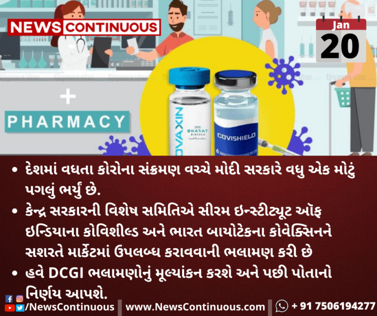કેન્દ્ર સરકારની વિશેષ સમિતિએ સીરમ ઇન્સ્ટીટ્યૂટ ઑફ ઇન્ડિયાના કોવિશીલ્ડ અને ભારત બાયોટેકના કોવેક્સિનને સશરતે માર્કેટમાં ઉપલબ્ધ કરાવવાની ભલામણ કરી છે