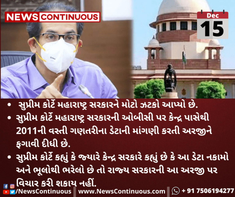 સુપ્રીમ કોર્ટે મહારાષ્ટ્ર સરકારની ઓબીસી પર કેન્દ્ર પાસેથી 2011ની વસ્તી ગણતરીના ડેટાની માંગણી કરતી અરજીને ફગાવી દીધી છે.