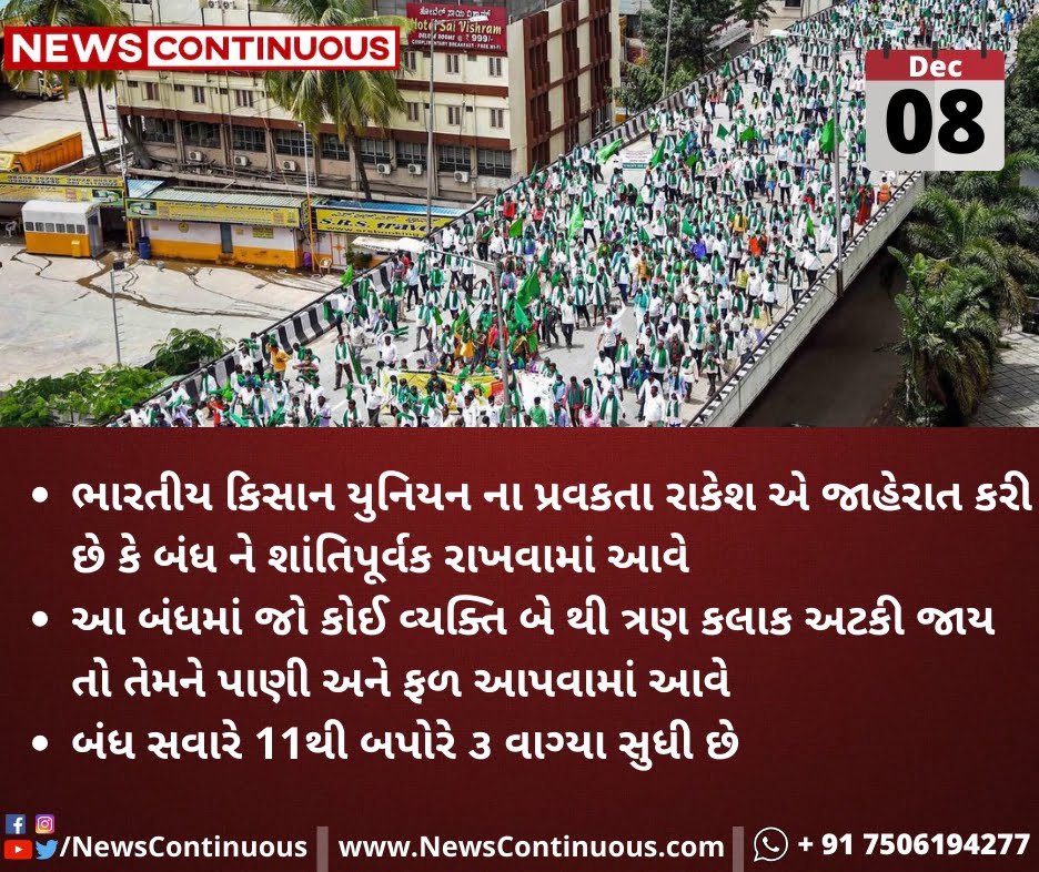 બંધમાં પણ ખેડૂતોની દયા અને અનુકંપા. કરી આ જાહેરાત. જાણો વિગત