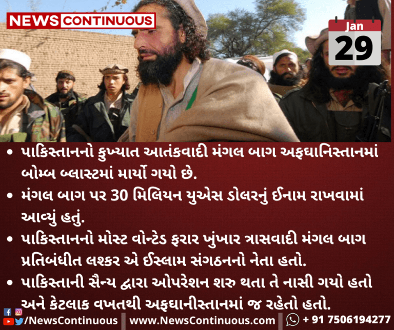 પાકિસ્તાનનો કુખ્યાત આતંકવાદી મંગલ બાગ અફઘાનિસ્તાનમાં બોમ્બ બ્લાસ્ટમાં માર્યો ગયો છે.