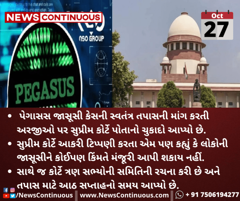 પેગાસસ જાસૂસી કેસની સ્વતંત્ર તપાસની માંગ કરતી અરજીઓ પર સુપ્રીમ કોર્ટે પોતાનો ચુકાદો આપ્યો છે.