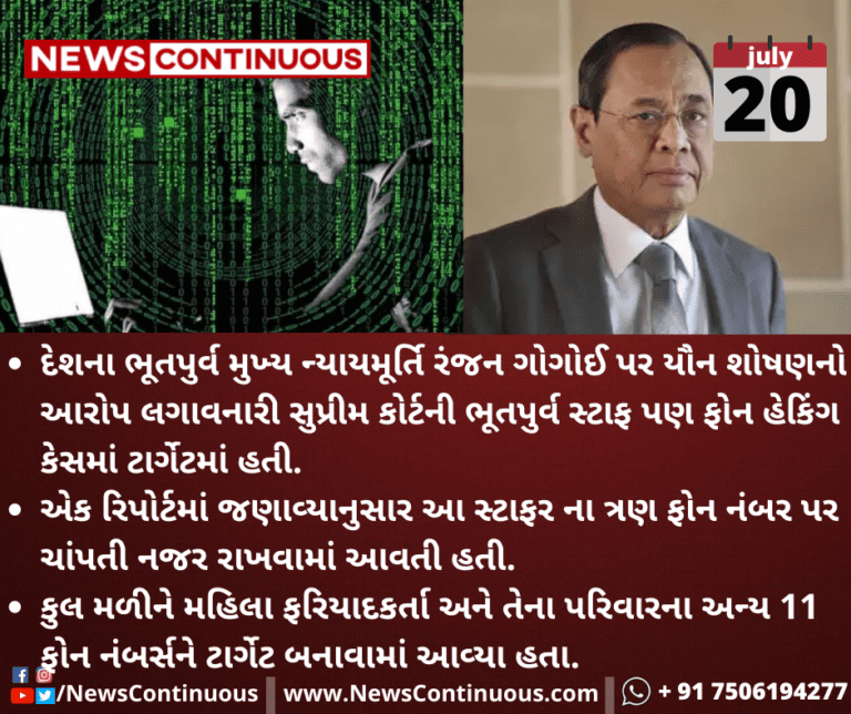 દેશના ભૂતપુર્વ મુખ્ય ન્યાયમૂર્તિ રંજન ગોગોઈ પર યૌન શોષણનો આરોપ લગાવનારી સુપ્રીમ કોર્ટની ભૂતપુર્વ સ્ટાફ પણ ફોન હેકિંગ કેસમાં ટાર્ગેટમાં હતી.