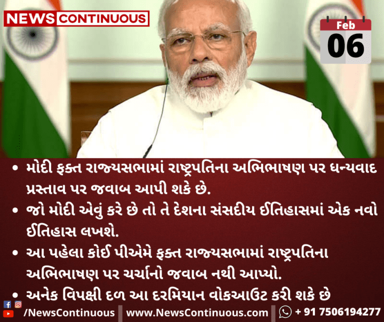 - મોદી ફક્ત રાજ્યસભામાં રાષ્ટ્રપતિના અભિભાષણ પર ધન્યવાદ પ્રસ્તાવ પર જવાબ આપી શકે છે.