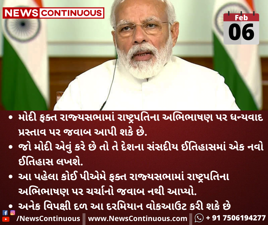 - આ પહેલા કોઈ પીએમે ફક્ત રાજ્યસભામાં રાષ્ટ્રપતિના અભિભાષણ પર ચર્ચાનો જવાબ નથી આપ્યો.
