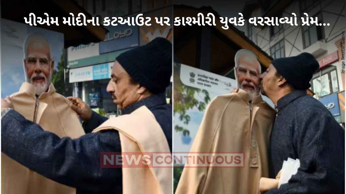 વાયરલ વીડિયોમાં એક કાશ્મીરી વ્યક્તિ ( Kashmiri man ) પીએમ નરેન્દ્ર મોદીના કટઆઉટ સ્ટેચ્યુ પર પ્રેમ વરસાવતો જોવા મળે છે. આ કાશ્મીરી વ્યક્તિનો પીએમ નરેન્દ્ર મોદીના ( PM Narendra Modi ) કટઆઉટ પ્રત્યેનો પ્રેમ અહીં જ અટક્યો ન હતો, તેણે પહેલા પીએમ મોદીના કટઆઉટને પ્રેમથી સહાનુભૂતિ કરી અને બે વાર ચુંબન કર્યું. આ પછી તેણે ફરીથી પીએમ મોદીના કટઆઉટને ગળે લગાવ્યું. આ દરમિયાન કાશ્મીરી વ્યક્તિ એકદમ ભાવુક દેખાઈ હતી.