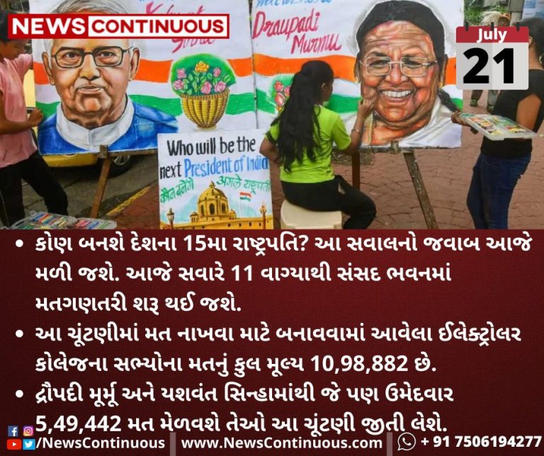 નવા રાષ્ટ્રપતિને 25 જુલાઈના રોજ પદ અને ગોપનીયતાના શપથ લેવડાવવામાં આવશે.