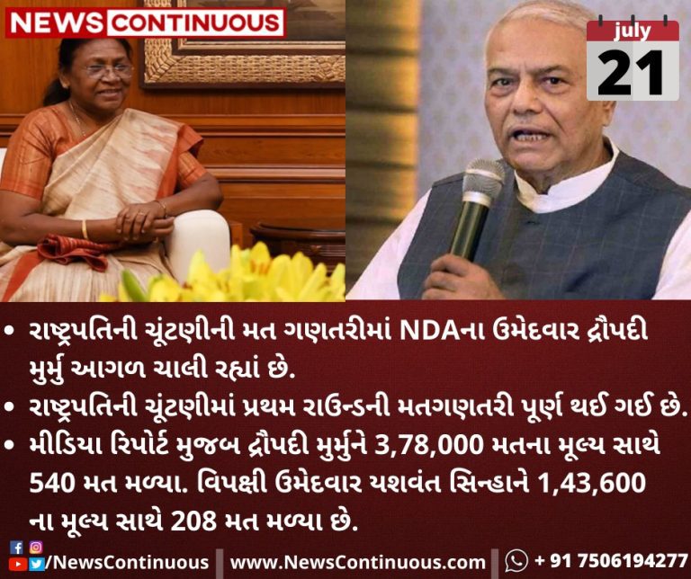 રાષ્ટ્રપતિની ચૂંટણીની(presidential election) મત ગણતરીમાં(vote counting) NDAના ઉમેદવાર(Candidate) દ્રૌપદી મુર્મુ(Draupadi Murmu) આગળ ચાલી રહ્યાં છે.