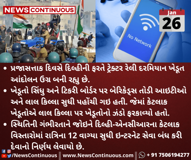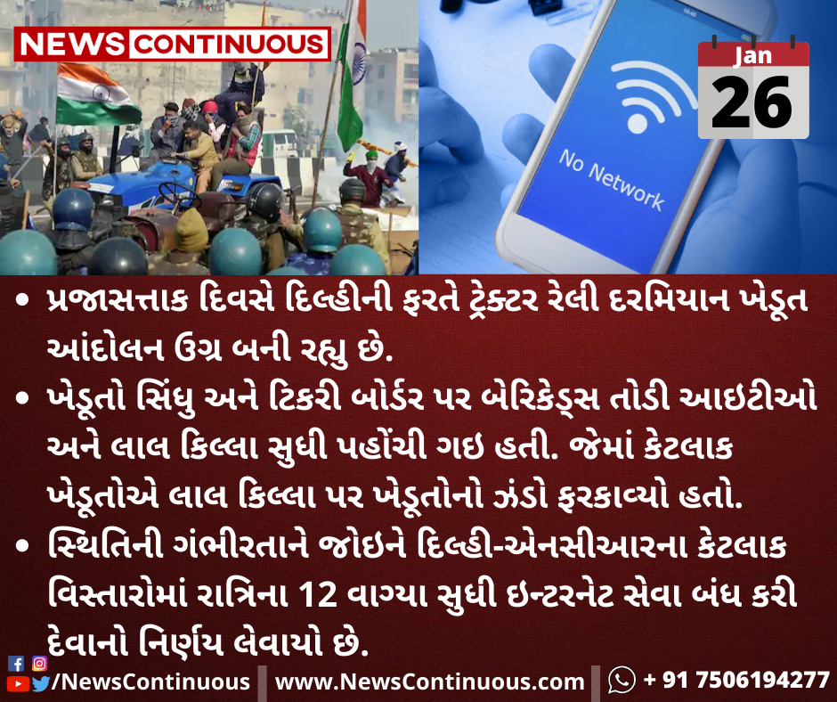 પ્રજાસત્તાક દિવસે દિલ્હીની ફરતે ટ્રેક્ટર રેલી દરમિયાન ખેડૂત આંદોલન ઉગ્ર બની રહ્યુ છે.