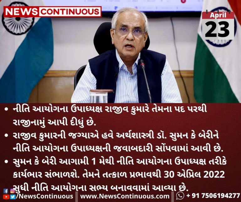 ઉલ્લેખનીય છે કે જાણીતા અર્થશાસ્ત્રી રાજીવ કુમારે ઓગસ્ટ 2017માં નીતિ આયોગના ઉપાધ્યક્ષનો પદભાર સંભાળ્યો હતો.