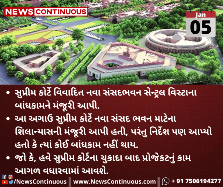 સુપ્રીમ કોર્ટે વિવાદિત નવા સંસદભવન સેન્ટ્રલ વિસ્ટાના બાંધકામને મંજૂરી આપી દીધી છે.