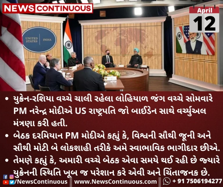યુક્રેન-રશિયા વચ્ચે ચાલી રહેલા લોહિયાળ જંગ વચ્ચે સોમવારે PM નરેન્દ્ર મોદીએ (Narendra Modi) US રાષ્ટ્રપતિ જો બાઈડેન Joe Biden)સાથે વર્ચ્યુઅલ મંત્રણા કરી હતી.