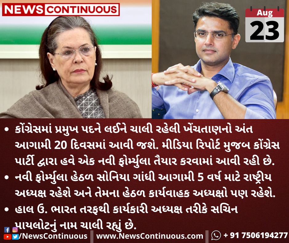 કહેવામાં આવી રહ્યું છે કે આ ફોર્મ્યુલા પર પાર્ટીની અંદર સહમતિ બની રહી છે. આ પછી નવા પ્રમુખની ચૂંટણી(Election of new President) માટેની પ્રક્રિયા પૂર્ણ થશે.