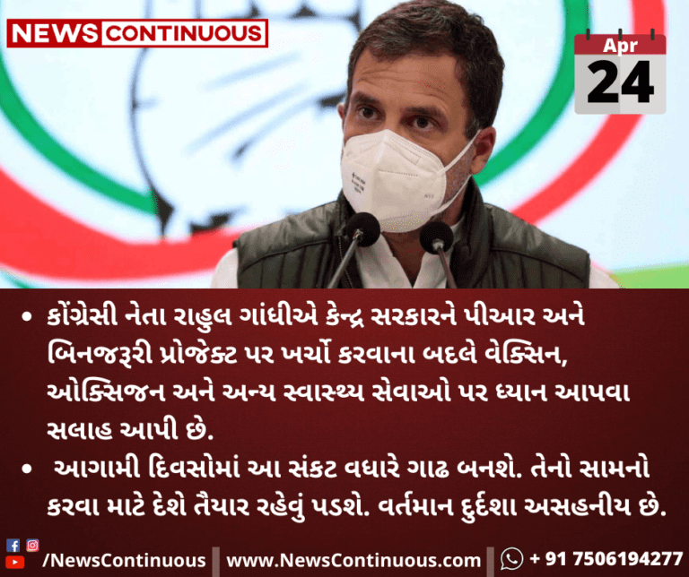 કોંગ્રેસી નેતા અને સાંસદ રાહુલ ગાંધીએ શનિવારે સવારે ટ્વીટ કરીને કેન્દ્રની મોદી સરકારને ટાર્ગેટ કરી હતી. તેમણે જણાવ્યું કે, કેન્દ્ર સરકારને સદ્ભાવપૂર્વક વિનંતી છે કે તેઓ પીઆર અને બિનજરૂરી પ્રોજેક્ટ પર ખર્ચો કરવાના બદલે વેક્સિન, ઓક્સિજન અને અન્ય સ્વાસ્થ્ય સેવાઓ પર ધ્યાન આપે.