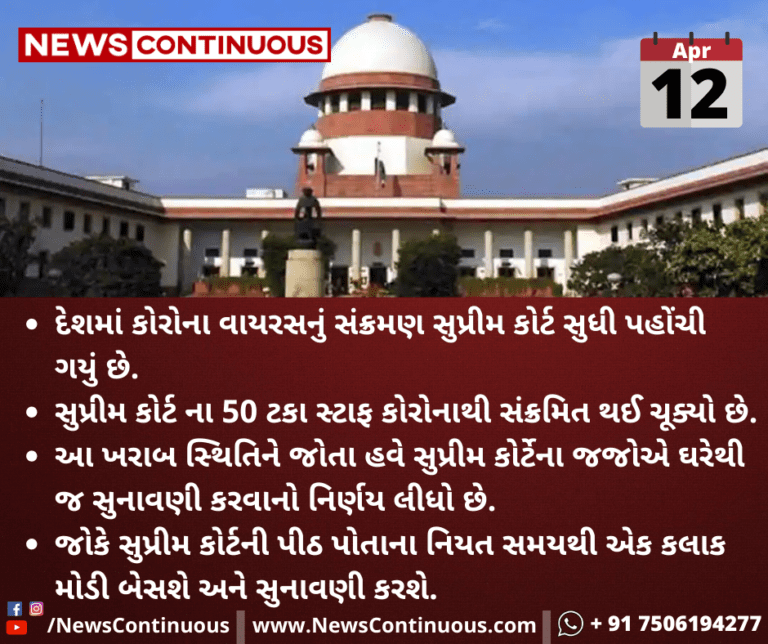 સુપ્રીમ કોર્ટ ના 50 ટકા સ્ટાફ કોરોનાથી સંક્રમિત થઈ ચૂક્યો છે. આ ખરાબ સ્થિતિને જોતા હવે સુપ્રીમ કોર્ટેના જજોએ ઘરેથી જ સુનાવણી કરવાનો નિર્ણય લીધો છે.