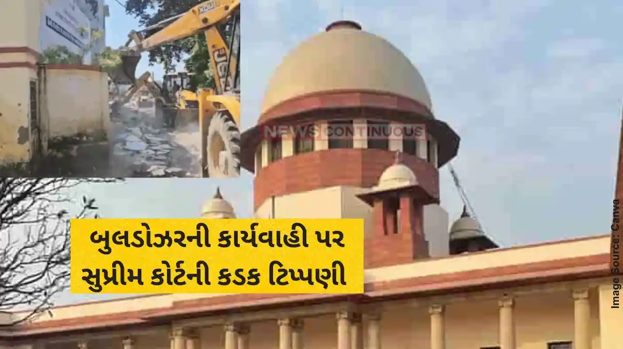 Supreme Court: બુલડોઝર કાર્યવાહીના મામલામાં આજે સુપ્રીમ કોર્ટમાં સુનાવણી હાથ ધરવામાં આવી હતી. જસ્ટિસ બીઆર ગવઈ અને જસ્ટિસ કેવી વિશ્વનાથનની બેન્ચે આ કેસની સુનાવણી કરી હતી. સુનાવણી દરમિયાન સુપ્રીમ કોર્ટે બુલડોઝરની કાર્યવાહી પર સવાલો ઉઠાવ્યા હતા. સુપ્રીમ કોર્ટે કહ્યું કે માત્ર આરોપી હોવાના આધારે કોઈની સામે આવી કાર્યવાહી ન થઈ શકે. જ્યારે સોલિસિટર જનરલ તુષાર મહેતાએ પોતાની દલીલો રજૂ કરી હતી. તુષાર મહેતાએ જણાવ્યું હતું કે નગરપાલિકાના કાયદા મુજબ જ આ કરી શકાય છે.