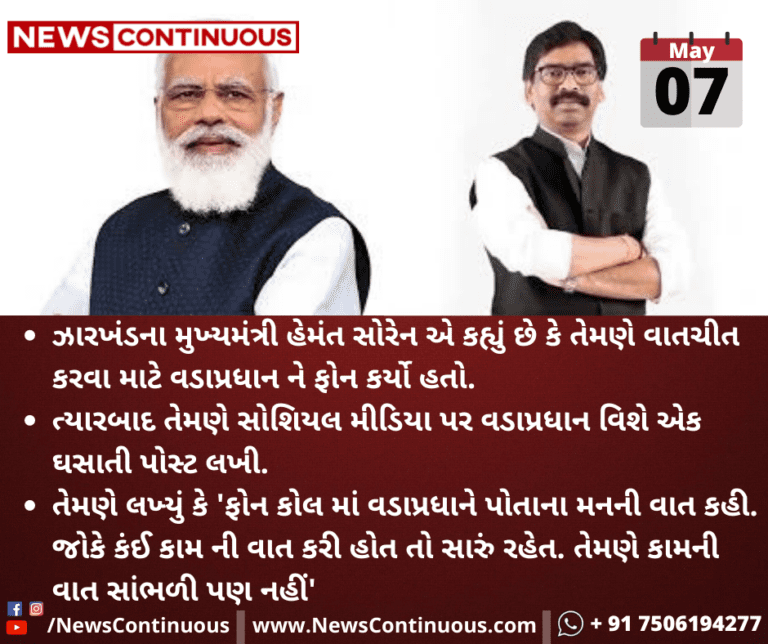 ઝારખંડના મુખ્યમંત્રી હેમંત સોરેન એ કહ્યું છે કે તેમણે વાતચીત કરવા માટે વડાપ્રધાન ને ફોન કર્યો હતો.