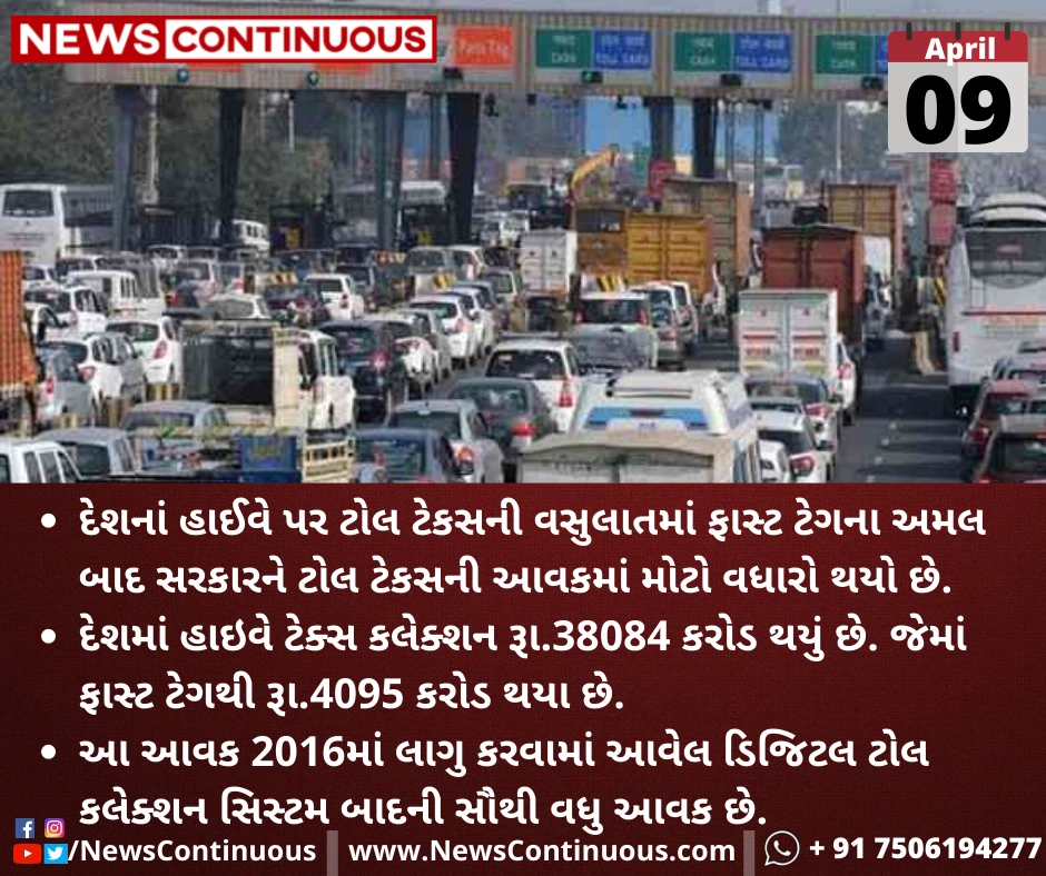 દેશનાં હાઈવે પર ટોલ ટેકસની વસુલાતમાં ફાસ્ટ ટેગના અમલ બાદ સરકારને ટોલ ટેકસની આવકમાં મોટો વધારો થયો છે.