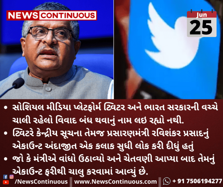 સોશિયલ મીડિયા પ્લેટફોર્મ ટ્વિટર અને ભારત સરકારની વચ્ચે ચાલી રહેલો વિવાદ બંધ થવાનું નામ લઇ રહ્યો નથી.