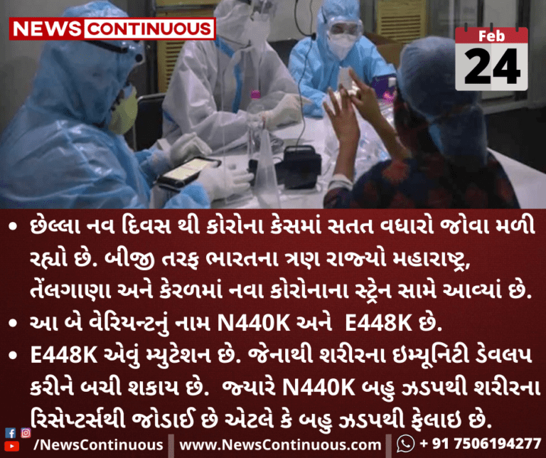 બીજી તરફ ભારતના ત્રણ રાજ્યો મહારાષ્ટ્ર, તેંલગાણા અને કેરળમાં નવા કોરોનાના સ્ટ્રેન સામે આવ્યાં છે. આ બે વેરિયન્ટનું નામ N440K અને E448K છે.