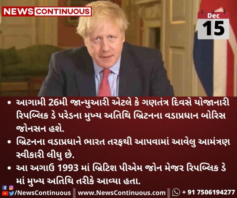 આગામી 26મી જાન્યુઆરી એટલે કે ગણતંત્ર દિવસે યોજાનારી રિપબ્લિક ડે પરેડના મુખ્ય અતિથિ બ્રિટનના વડાપ્રધાન બોરિસ જોનસન હશે.