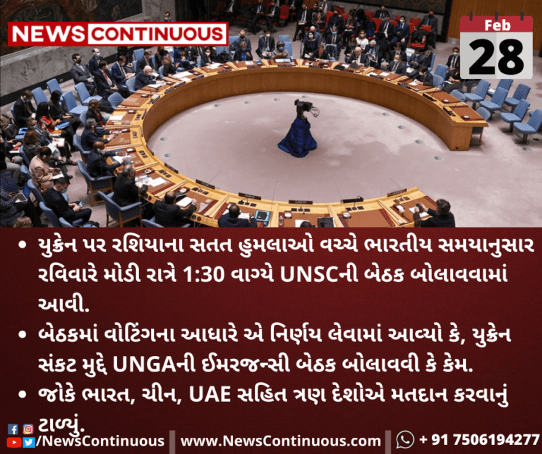 યુક્રેન પર રશિયાના સતત હુમલાઓ વચ્ચે ભારતીય સમયાનુસાર રવિવારે મોડી રાત્રે 1:30 વાગ્યે સંયુક્ત રાષ્ટ્ર સુરક્ષા પરિષદની બેઠક બોલાવવામાં આવી.