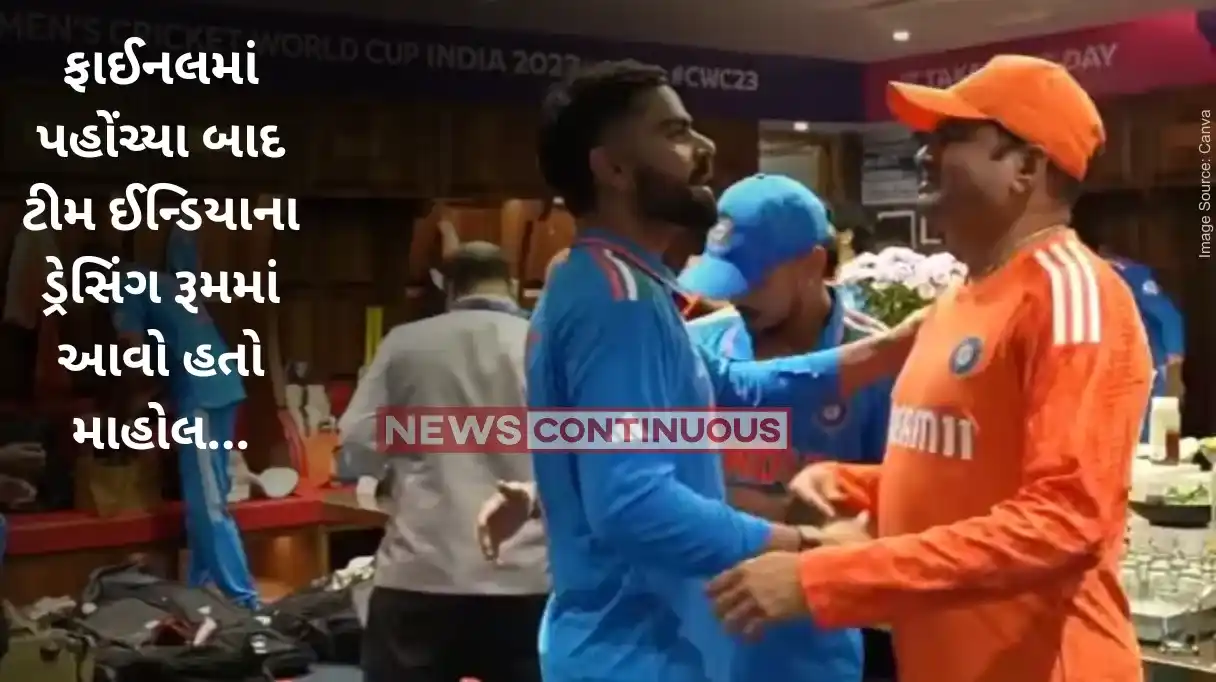 ફાઈનલમાં પહોંચ્યા બાદ ટીમ ઈન્ડિયાના ડ્રેસિંગ રૂમમાં વાતાવરણ ઘણું સારું હતું, આ દરમિયાન ખેલાડીઓએ પણ ખૂબ એન્જોય કર્યું હતું. ટીમનો સ્ટાફ ખેલાડીઓની પ્રશંસા કરતો જોવા મળ્યો હતો. આ દરમિયાન ટીમના બેટિંગ કોચે વિરાટ કોહલીને ગળે લગાવ્યો. આખી ભારતીય ટીમ અને સ્ટાફ માટે તે ભાવનાત્મક ક્ષણ હતી, જે કેમેરામાં કેદ થઈ હતી. આ વખતે, ટીમ હોટલમાંથી નીકળી ત્યારથી લઈને બસમાં ચઢી ત્યાં સુધી ચાહકોથી ઘેરાયેલી હતી. ટીમ ઈન્ડિયાની આ ઐતિહાસિક જીતથી ચાહકો પણ ઘણા ખુશ હતા. હોટેલમાં હજારો ચાહકોની ભીડ હતી. ટીમ ઈન્ડિયાને દરેક મેચમાં પ્રશંસકોનો પૂરો સાથ મળી રહ્યો છે. સેમી ફાઈનલ મેચ જીત્યા બાદ ટીમ ઈન્ડિયા ફાઈનલ મેચ માટે અમદાવાદ રવાના થઈ હતી.