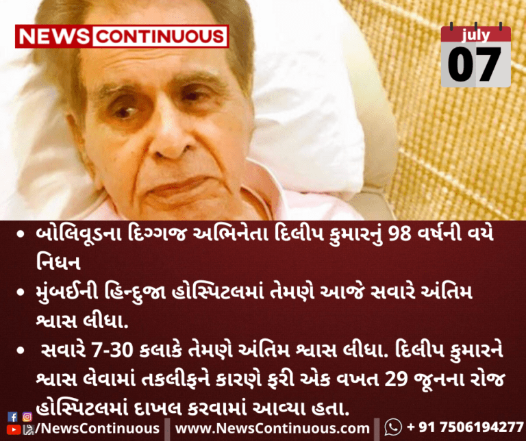 - બોલિવૂડના દિગ્ગજ અભિનેતા દિલીપ કુમારનું 98 વર્ષની વયે નિધન