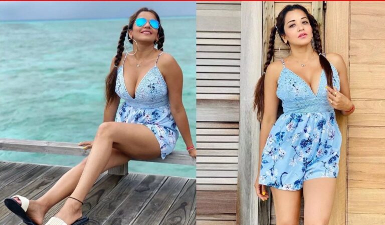 આ તસવીરોમાં મોનાલિસા પરફેક્ટ બીચ લુકમાં જોવા મળી રહી છે, તેણે ડીપ નેક શોર્ટ ડ્રેસ પહેર્યો છે.