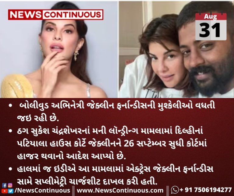 ઠગ સુકેશ ચંદ્રશેખરનાં મની લૉન્ડ્રીન્ગ મામલામાં દિલ્હીનાં પટિયાલા હાઉસ કોર્ટે જેક્લીનને 26 સપ્ટેમ્બર સુધી કોર્ટમાં હાજર થવાનો આદેશ આપ્યો છે.